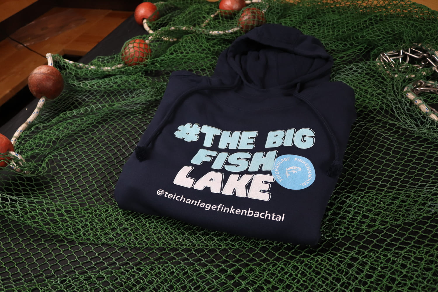 Der „The Big Fish Lake“ Hoodie bringt internationales Flair an den Teich. Mit seinem klaren, englischsprachigen Frontprint richtet er sich an alle, die ihre Liebe zum Angeln und zur Teichanlage Finkenbachtal weltweit zeigen wollen.